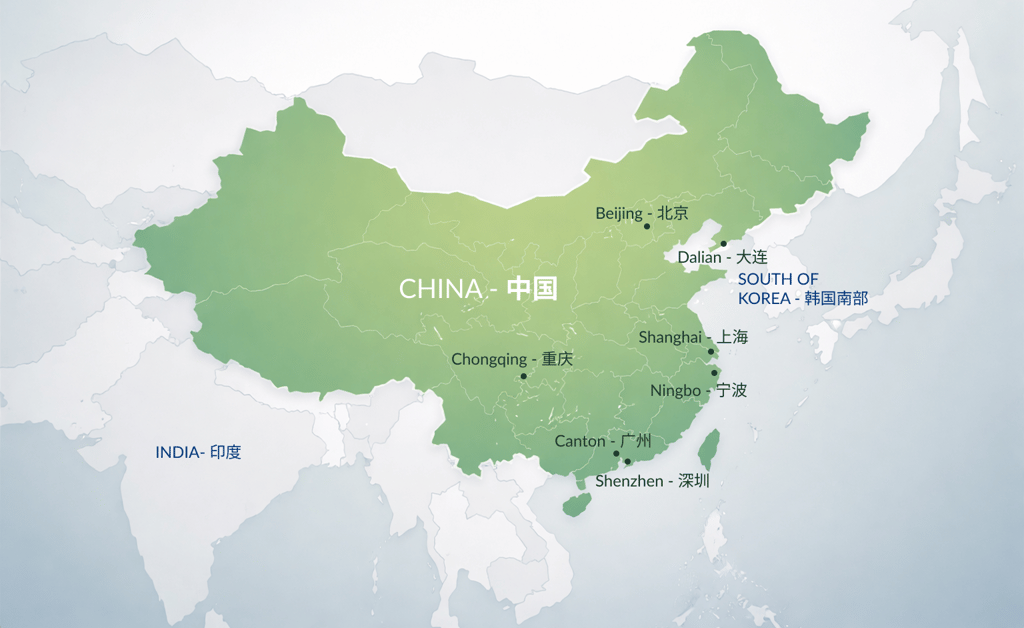 We operate throughout China as well as in several neighboring countries.